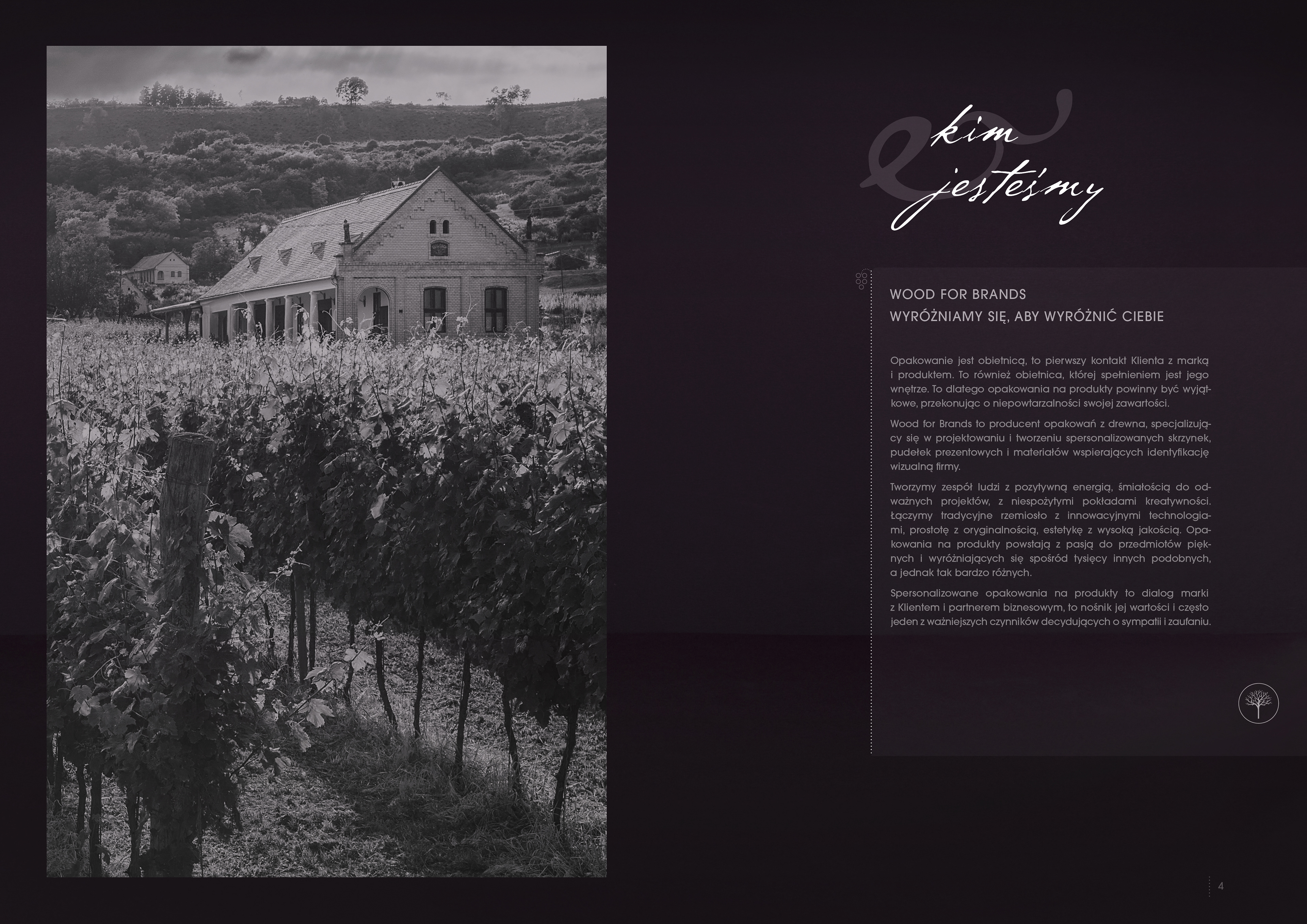 Projekt katalogu oraz sesja zdjęciowa dla producenta drewnianych opakowań na wino.