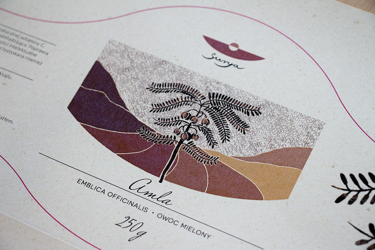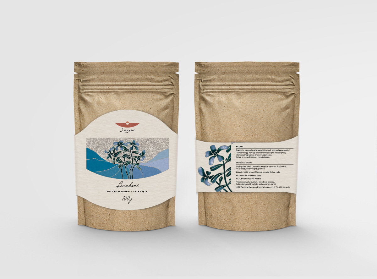 Projekt logo oraz opakowań dla producenta ziół ajurwedyjskich.