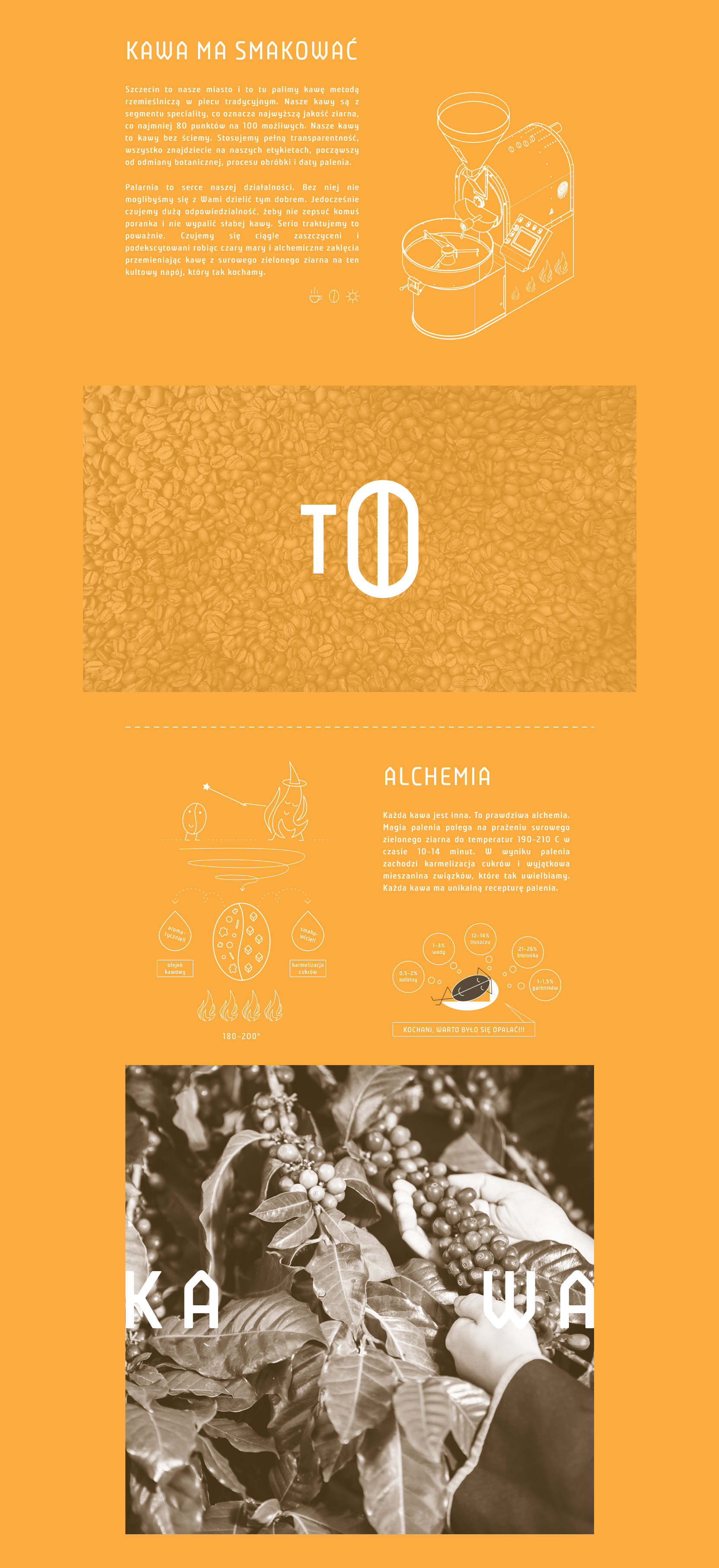 Znak, identyfikacja wizualna, ilustracje, animacje, zestaw ikon, projekty opakowań oraz strona internetowa dla palarni kawy To Kawa ze Szczecina.